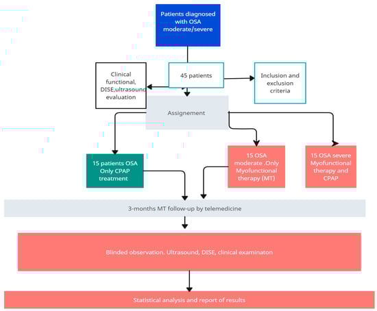 To develop the protocol, patients with sleep apnea underwent submental cervical ultrasound and DISE before starting to use the AirwayGym app (www.airwaygym.app, accessed on 27 January 2024) and after 3 months of treatment.
