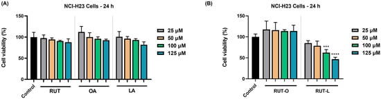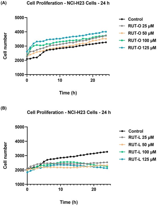 3.2. RUT-L Significantly Reduces the Viability of NCI-H23 Cells