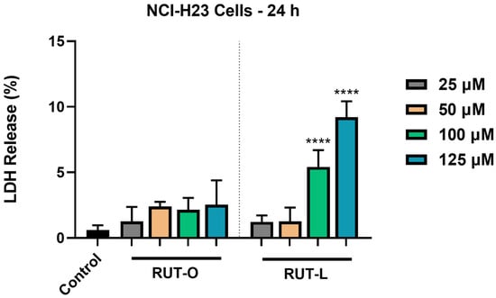 3.4. RUT-L Significantly Increases LDH Release from NCI-H23 Cells