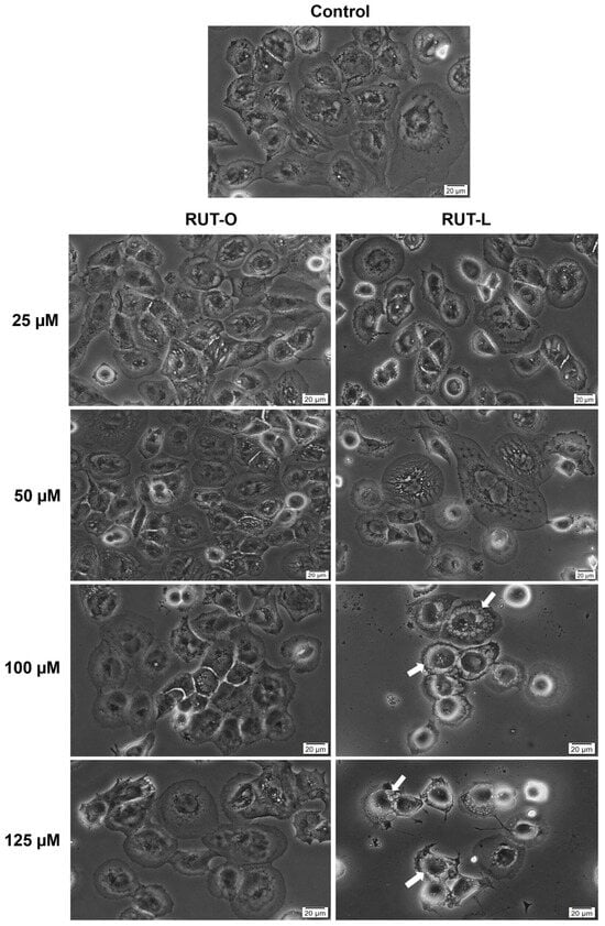 3.5. RUT-L Triggers Cytoplasmic Vacuolation in NCI-H23 Cells