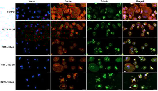 3.7. RUT-L Alters Nuclear and Cytoskeletal Appearance in NCI-H23 Cells