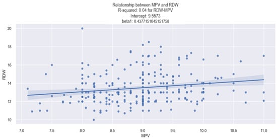 Concerning the relationship between the MPV and red cell distribution width (RDW) values in our study, our findings indicate that an elevated MPV is associated with a higher RDW value. This association was established through the application of the linear regression method, and the data regarding the MPV coefficients are revealed in Table 4.