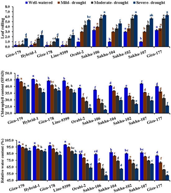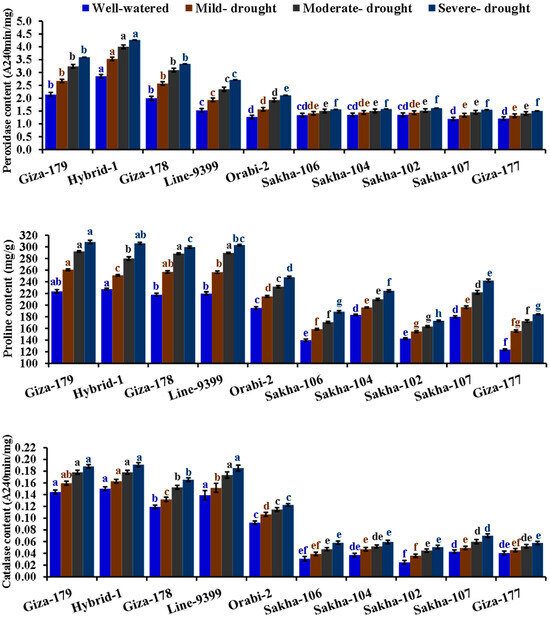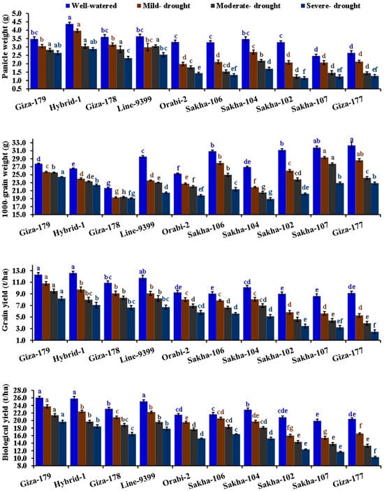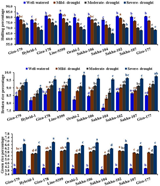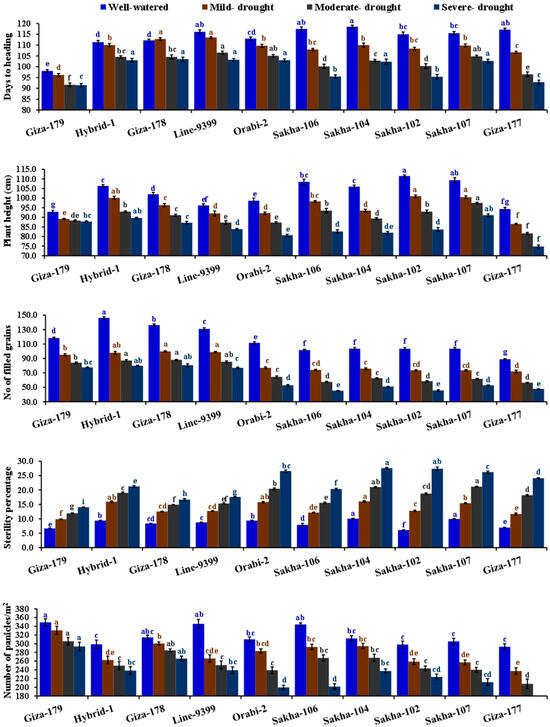 | Sakha-107 | 73.84 d | 62.79 de | 53.71 cd | 9.05 cd | 5.46 d | |