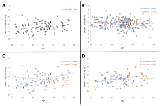 3.1. Age-Related Variations in MiRNA Expression