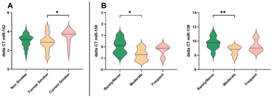 3.4. Impact of Smoking Behaviour on MiRNA Expression