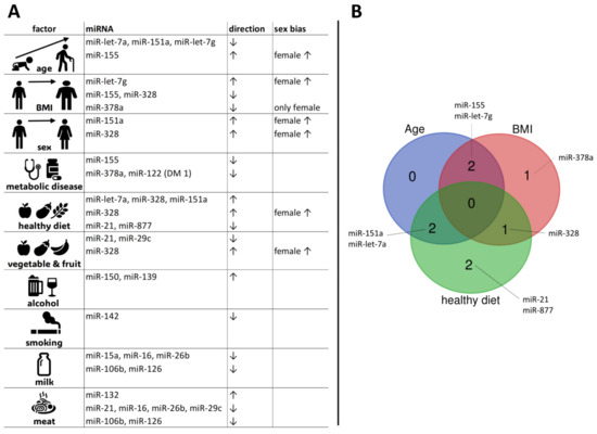 APA StylePointner, A., Krammer, U. D. B., Tomeva, E., Magnet, U., Hippe, B., Jacob, U., & Haslberger, A. G. (2024). Lifestyle-Driven Variations in Nutrimiromic MicroRNA Expression Patterns across and beyond Genders. Life, 14(3), 390. https://doi.org/10.3390/life14030390