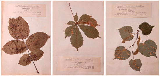 At the end of the nineteenth century, several naturalists (mainly botanists) focussed their attention on galls by sampling them and creating collections, usually called cecidological herbaria [1,2,3]. Even though galls were often sampled from the same or similar host plant species, cecidological herbaria (Figure 1) may be differently organised. Indeed, galls may be enclosed in envelopes, collected in standard herbarium sheets or included in mixed collections consisting of envelopes, sheets and boxes containing galls and/or the gall-inducing species [1,2,3,4,5,6].