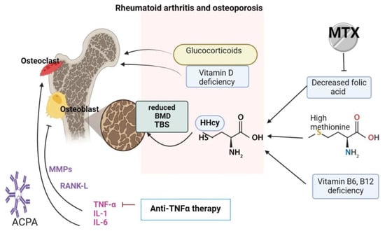 - Álvarez-Cienfuegos, A.; Cantero-Nieto, L.; García-Gomez, J.A.; Callejas-Rubio, J.L.; González-Gay, M.; Ortego-Centeno, N. Association Between Homocysteine Serum Level and Bone Mineral Density in Patients with Rheumatoid Arthritis. J. Clin. Densitom. 2020, 23, 561–567. [Google Scholar] [CrossRef] [PubMed]