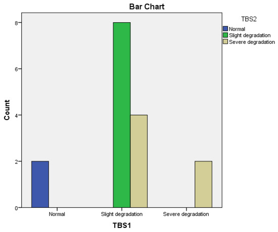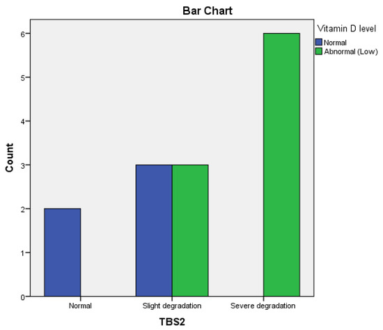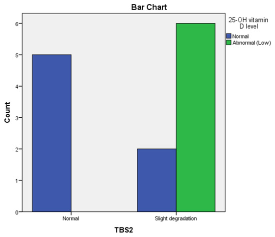| Slight bone architectural change | Significantly low TBS1 value | ||