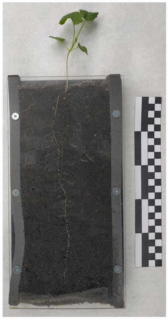 The use of soil-filled rhizotrons can be a good compromise between in vitro systems and field studies, allowing real-time, non-invasive studies of root system development [48]. Root responses of agricultural crops to different stressors have been investigated in such systems in several cases, e.g., treated with zinc [49] or nickel [50], combined heavy metal treatment modeling wastewater [51], polypropylene surgical mask fragments [52], or raw and nutrient-enriched pomegranate peel powder [53].