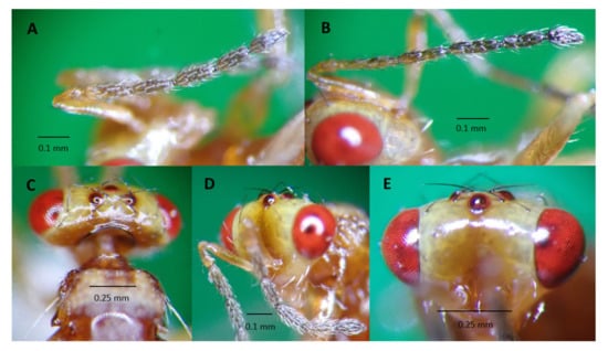 - Kerrich, G.J. A revision of the tropical and subtropical species of the eulophid genus Pediobius Walker (Hymenoptera: Chalcidoidea). Bull. Br. Mus. (Nat. Hist.) Entomol. 1973, 29, 115–200. [Google Scholar]
