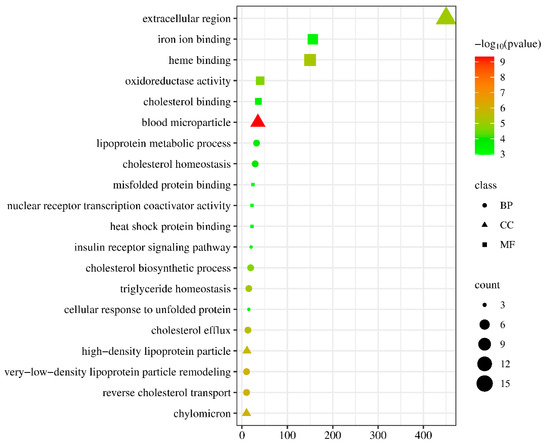 The figure shows the top 20 enriched GO terms in the liver of M. piceus following treatment with NIC concentration.