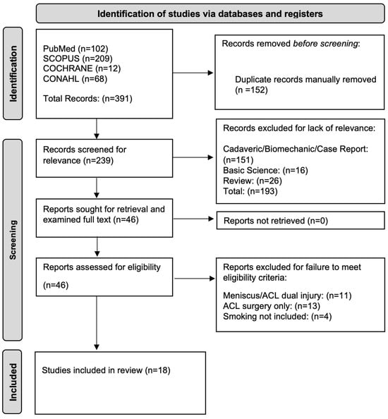 - Kanneganti, P.; Harris, J.D.; Brophy, R.H.; Carey, J.L.; Lattermann, C.; Flanigan, D.C. The effect of smoking on ligament and cartilage surgery in the knee: A systematic review. Am. J. Sports Med. 2012, 40, 2872–2878. [Google Scholar] [CrossRef] [PubMed]