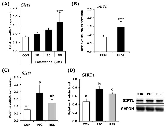 3.1. PIC Upregulated the mRNA and Protein Expression of Sirt1