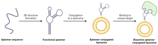 The process of creating a bioactive aptamer-conjugated liposome. Created with BioRender.com on 24 March 2024.