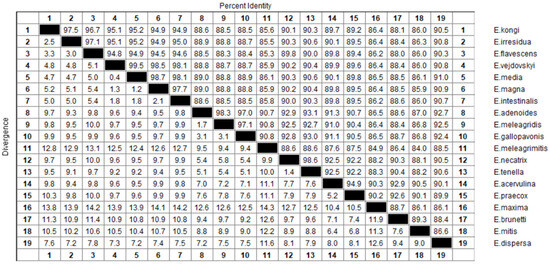The nucleotides sequences of the complete mtDNA among the 18 Eimeria species and E. kongi.