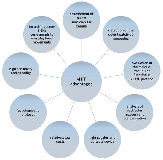 As there are several commercial vHIT devices available and the costs are relatively low in comparison to other vestibular tests, the method is becoming more widely accessible. There are numerous advantages of this diagnostic methos (Figure 2). Nevertheless, to our best knowledge, the availability of the vHIT in the emergency department in individual countries and regions has not yet been described in the literature. Further studies analyzing the use of this method and its costs would be very valuable.
