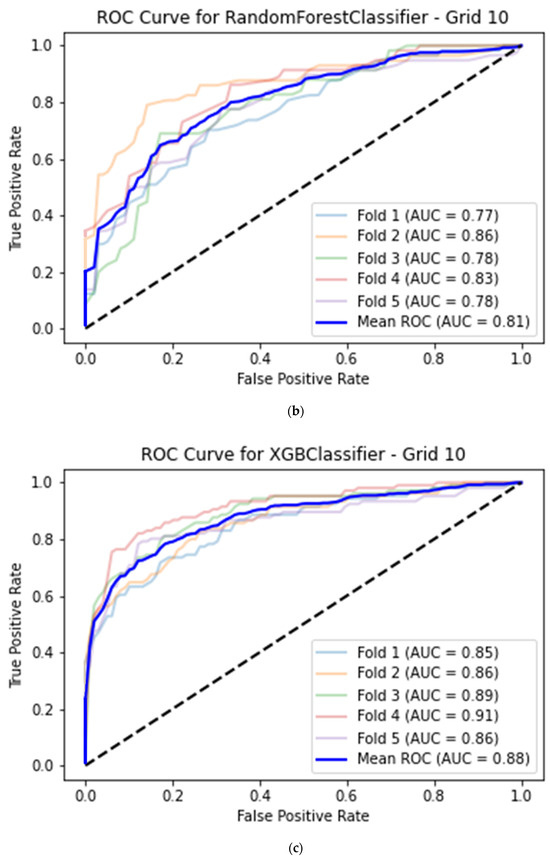 For the developed models, the values of AUC were usually slightly higher than the reported corresponding accuracies (Table 4). Thus, the models seem to provide rather balanced prediction capabilities from the statistical point of view [27,29].