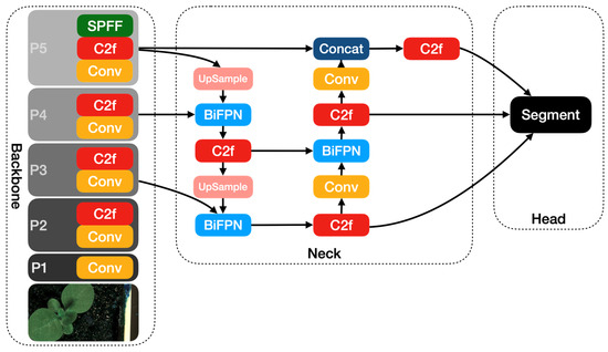 In this paper, we incorporate the BiFPN module into the neck of the YOLOv8 module and present the YOLOv8-BiFPN model. Figure 5 shows the architecture of the YOLOv8-BiFPN model.