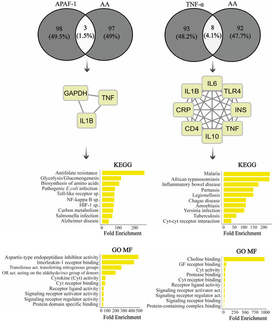 3.6. AA Is Molecularly Associated with APAF-1 and TNF-α Pathways