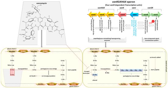 - Novotna, G.; Hill, C.; Vincent, K.; Liu, C.; Hong, H.J. A novel membrane protein, VanJ, conferring resistance to teicoplanin. Antimicrob. Agents Chemother. 2012, 56, 1784–1796. [Google Scholar] [CrossRef] [PubMed]