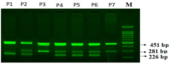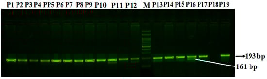 PCR-amplified products were separated on 2% agarose gel electrophoresis, stained with sybre safe dye, and visualized under a UV transilluminator from Bio-Rad, Hercules, CA, USA.