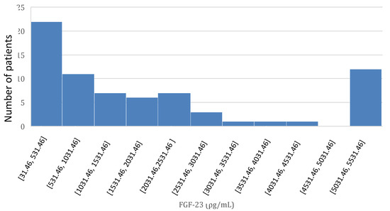 Statistical analysis: The continuous variables were reported as median and interquartile range and mean ± standard deviation (SD) according to their distribution. The categorical variables were described as absolute numbers and percentages. We tested the normality of the variable distribution using the Shapiro–Wilk test. Student’s t-test, the Mann–Whitney U, and the chi-square test were used to compare continuous and categorical variables as appropriate. Univariate and multivariate back-forward stepwise linear regression was used to evaluate the impact of covariates on PTH and FGF-23 levels after the normalization of variables through Log transformation.