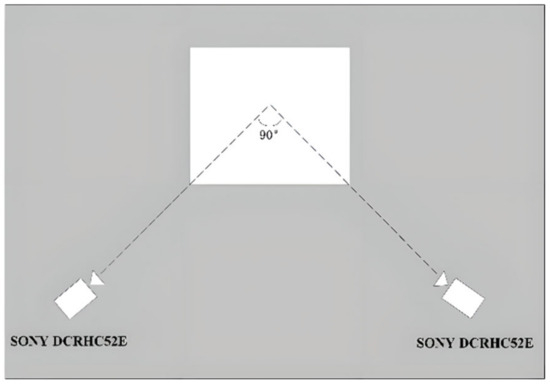 Camera System: Two SONY NEX-VG900E cameras (Sony Corporation, Tokyo, Japan)(lens: SONY SEL18200LE) were used to record the competition at a frame rate of 50 frames per second. Two cameras were positioned on the left and right sides of the lifting platform, with an angle of approximately 90° between their main optical axes centered on the platform. The cameras were placed at a distance of about 10 m from the subjects, and both the camera positions and focal lengths were kept constant throughout the experiment [12] (see Figure 1 and Figure 2).