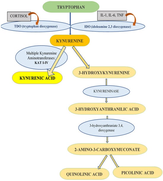 - Miura, H.; Ozaki, N.; Sawada, M.; Isobe, K.; Ohta, T.; Nagatsu, T. A link between stress and depression: Shifts in the balance between the kynurenine and serotonin pathways of tryptophan metabolism and the etiology and pathophysiology of depression. Stress 2008, 11, 198–209. [Google Scholar] [CrossRef]