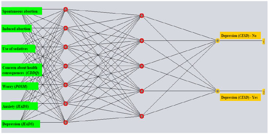Research has shown that the frequency of depression after colposcopy ranged from 7% to 22% [14,15,16]. The results of most studies indicated that depression was lower after colposcopy [16,17,18]. In a study in Great Britain [14], the frequency of depression (defined as a score of ≥8 according to the “Hospital Anxiety and Depression Scale” (HADS) questionnaire—depression subscale) was lower after (6.6%) than before colposcopy (7.9%). A two-year follow-up study of depression in women who were referred to colposcopy after receipt of an abnormal cervical smear within the organized screening in some countries showed that the level of depression decreased over time [19,20]. This study aimed to develop artificial neural network models for predicting depression prior to and following diagnostic procedures in women who received a positive Pap screening test.