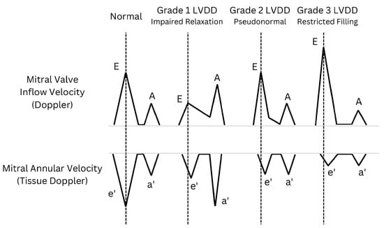 - Obokata, M.; Reddy, Y.N.V.; Borlaug, B.A. Diastolic dysfunction and heart failure with preserved ejection fraction: Understanding mechanisms by using noninvasive methods. JACC Cardiovasc. Imaging 2020, 13, 245–257. [Google Scholar] [CrossRef]