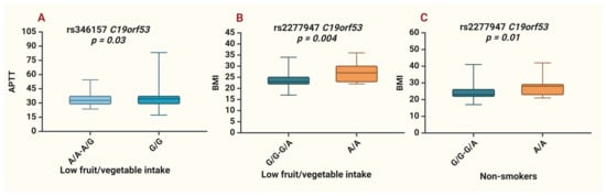4.2. Insuficient Fruit and Vegetable Intake-Linked Associations of C19orf53
