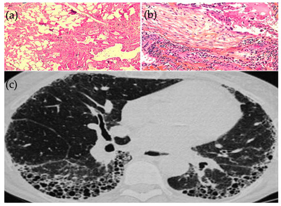 - Renzoni, E.A.; Walsh, D.A.; Salmon, M.; Wells, A.U.; Sestini, P.; Nicholson, A.G.; Veeraraghavan, S.; Bishop, A.E.; Romanska, H.M.; Pantelidis, P.; et al. Interstitial vascularity in fibrosing alveolitis. Am. J. Respir. Crit. Care Med. 2003, 167, 438–443. [Google Scholar] [CrossRef] [PubMed]