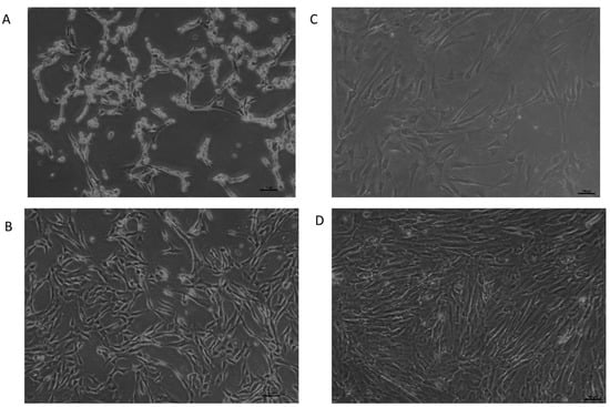 UC-MSCs were obtained from the Department of Tissue Engineering and Regenerative Medicine (DTERM) Primary Cell Bank. FD-HPL prepared by both the calcium chloride and mechanical methods was added to low-glucose DMEM at a 10% concentration, supplemented with a 1% antibiotic-antimycotic solution (Gibco, New York, NY, USA). The revived cells were cultured in these media and incubated at 37 °C with 5% CO2. The medium was changed every 2–3 days. Cells were examined under 40× magnification using an inverted microscope, and their morphology was captured daily for five days.