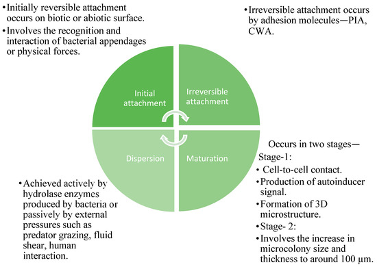 | Initial Adhesion | Initial adhesion is reversible in nature and later becomes irreversible. | Adhesion proteins like adhesins and surface. | Surface modification |