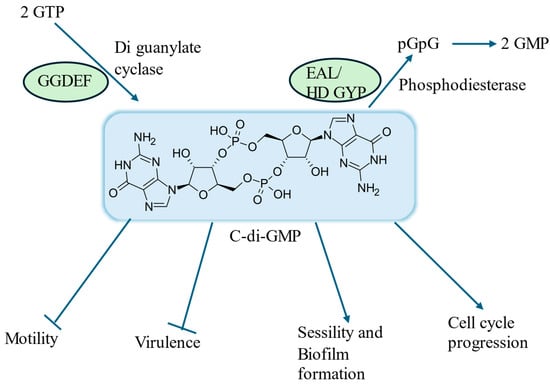 - Valentini, M.; Filloux, A. Biofilms and Cyclic Di-GMP (c-Di-GMP) Signaling: Lessons from Pseudomonas Aeruginosa and Other Bacteria. J. Biol. Chem. 2016, 291, 12547–12555. [Google Scholar] [CrossRef]