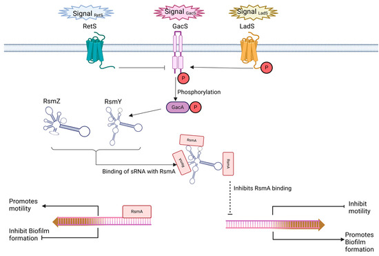 - Song, H.; Li, Y.; Wang, Y. Two-Component System GacS/GacA, a Global Response Regulator of Bacterial Physiological Behaviors. Eng. Microbiol. 2023, 3, 100051. [Google Scholar] [CrossRef]