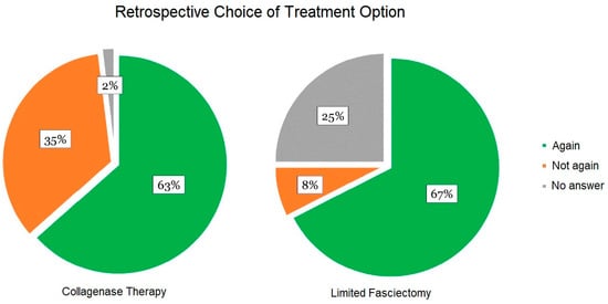 - Beecher, S.M.; Wilkinson, J.E.; Cuggy, C.; O’Shaughnessy, M. Patient’s perspective of treatment in Dupuytren’s Disease: Collagenase versus limited fasciectomy. J. Hand Surg. Eur. Vol. 2022, 47, 1172–1174. [Google Scholar] [CrossRef] [PubMed]
