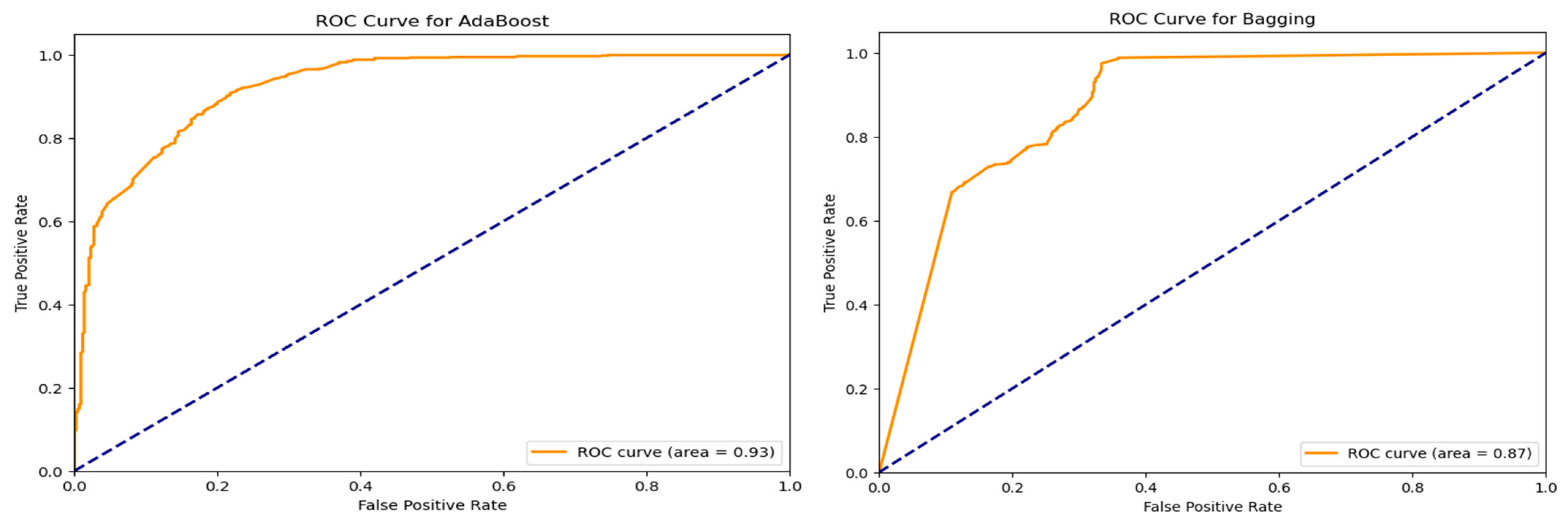 Figure 8, highlighting its high true positive rate across all threshold levels. This curve underscores the discriminative strength of the ensemble model. Emphasizing the model’s robustness, the corresponding confusion matrix shown in