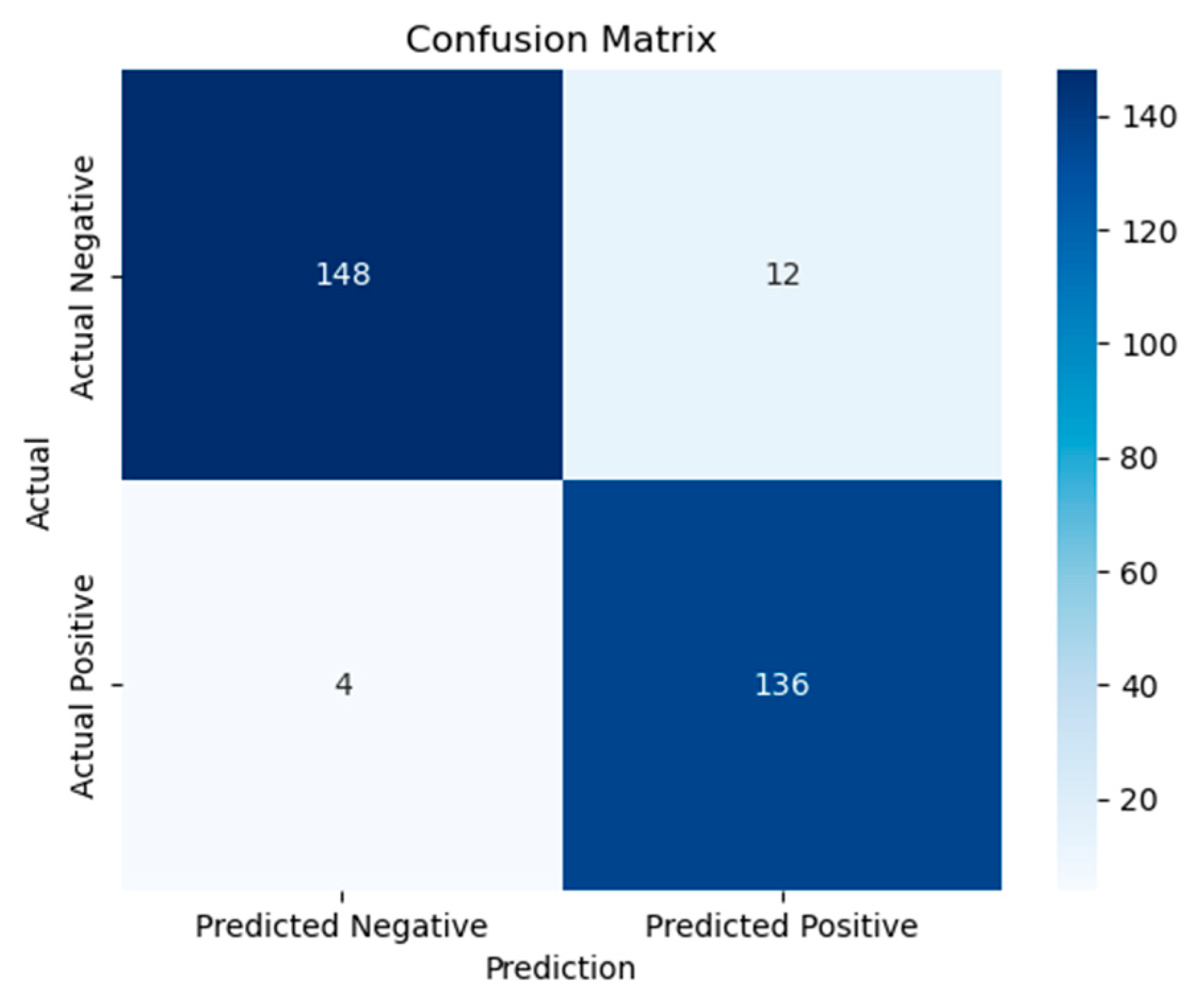 Figure 11 displays the confusion matrix as a heatmap, illustrating the model’s correct classification rates alongside the nature of false predictions. Additionally,