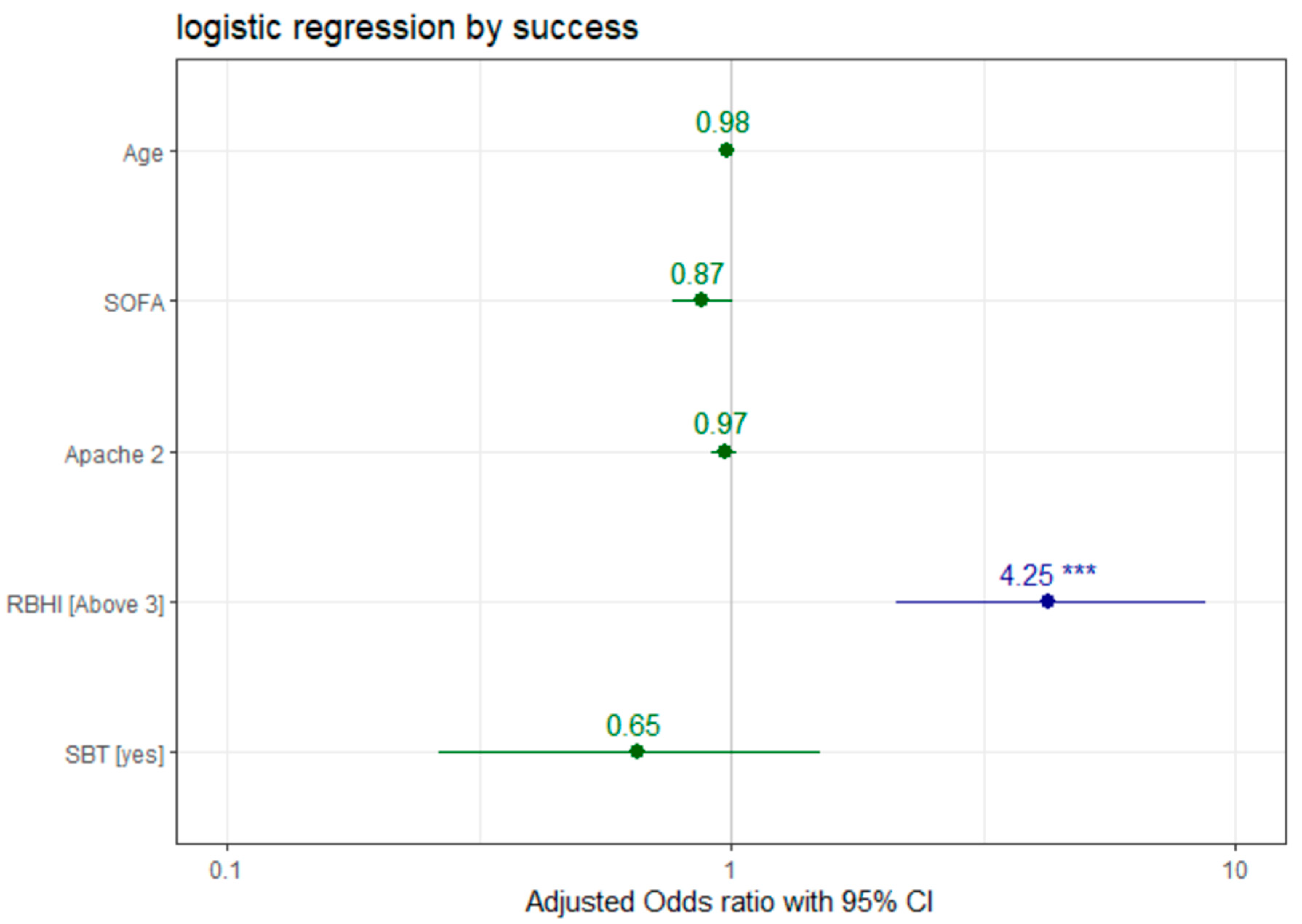 p = 0.051), while RBHI over 3 was correlated with higher rates of successful extubation (OR 4.252, 95% CI 2.1158–8.7130,