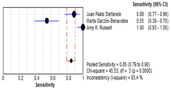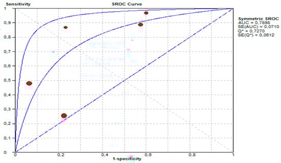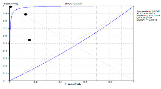 The meta-analysis was conducted to evaluate the diagnostic performance of the included studies. Meta-Disc software (version 1.4) was used for all the statistical analyses. The sensitivity (Sn), specificity (Sp), and the area under the receiver operating characteristic curve (AUROC) were calculated to assess the diagnostic accuracy of the index test across the studies. Summary estimates of Sn and Sp were derived, and the corresponding summary receiver operating characteristic (SROC) curve was constructed. The heterogeneity of the results was evaluated through Cochran’s Q test and the I2 statistic, and sources of variability were explored where appropriate. Additionally, we performed subgroup analyses to investigate potential influencing factors and ensure robustness of the findings. All the analyses adhered to established methodological standards for diagnostic test accuracy reviews.