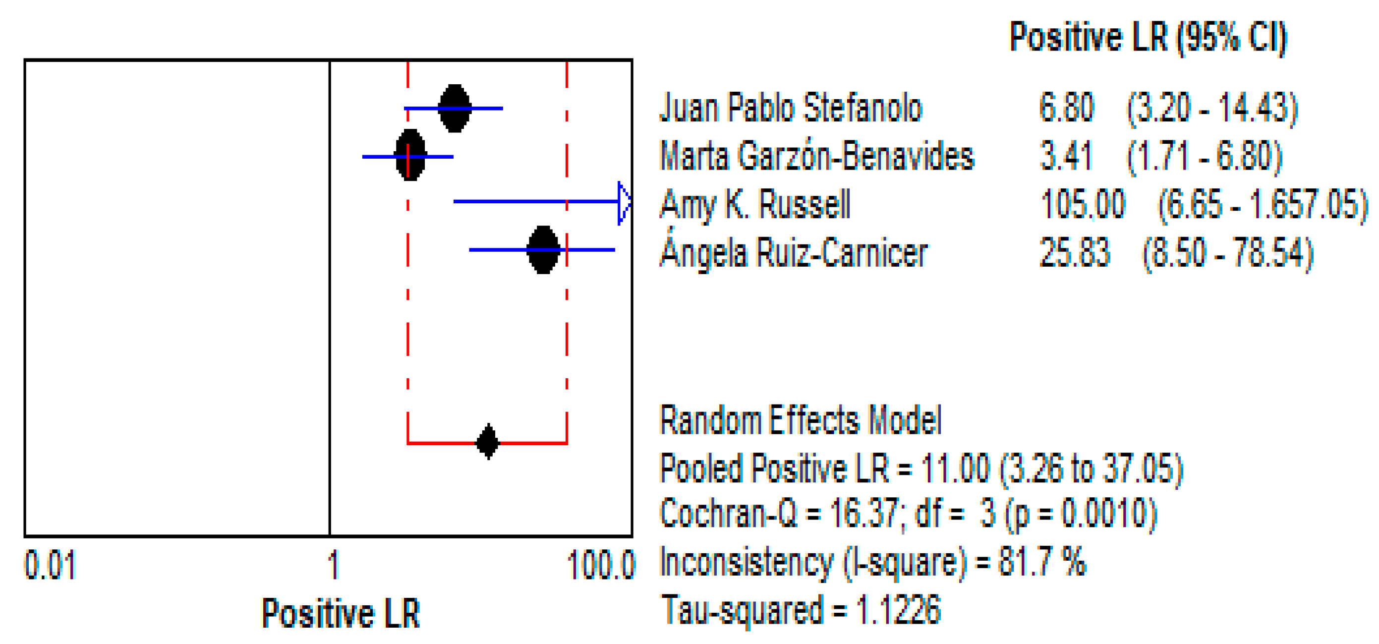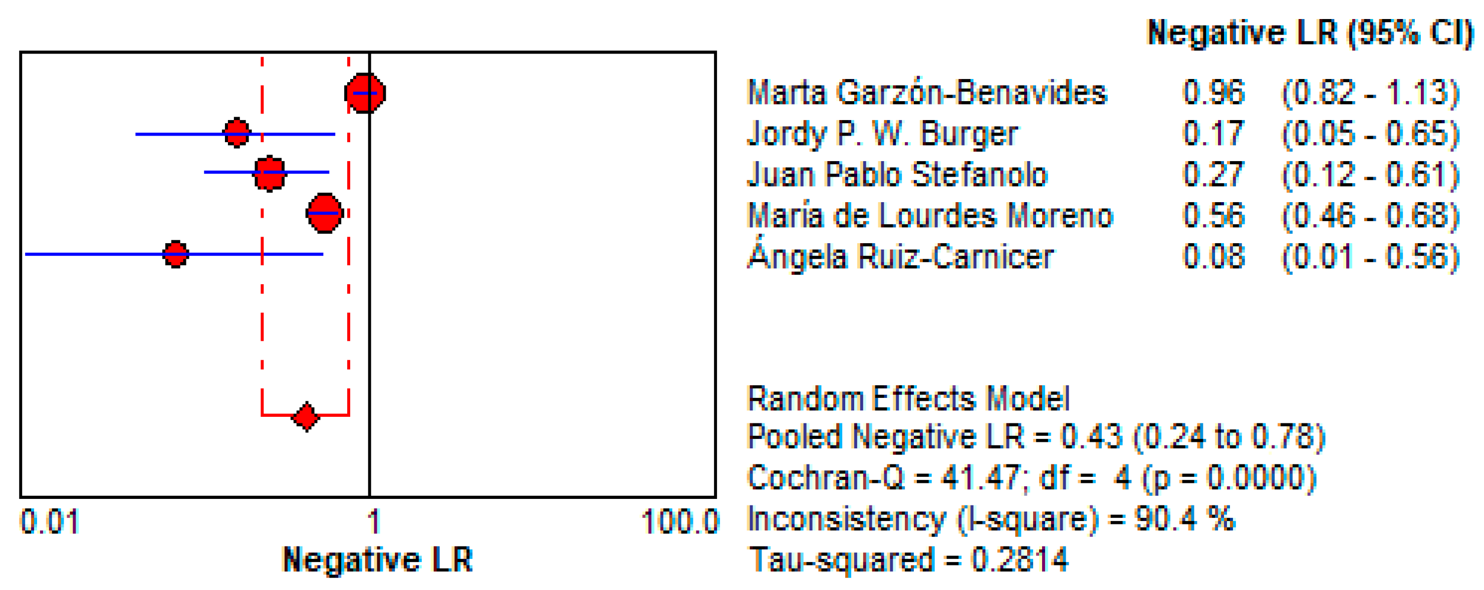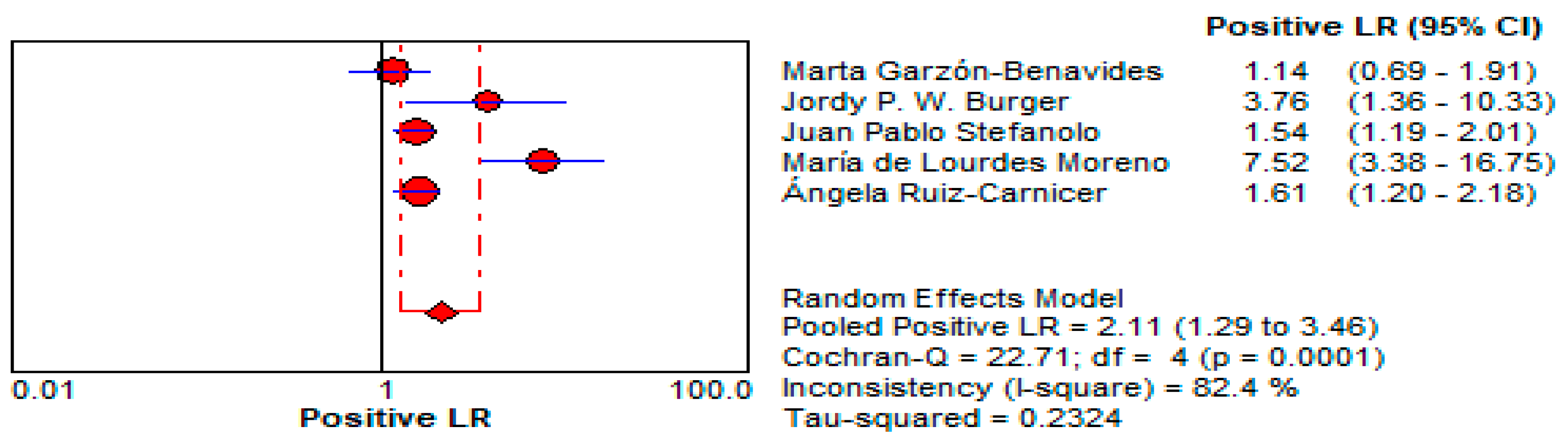 - The specificity values ranged from 84.0% to 100% across the included studies, with moderate heterogeneity (I2 = 81.0%). These findings are depicted in Figure 5.