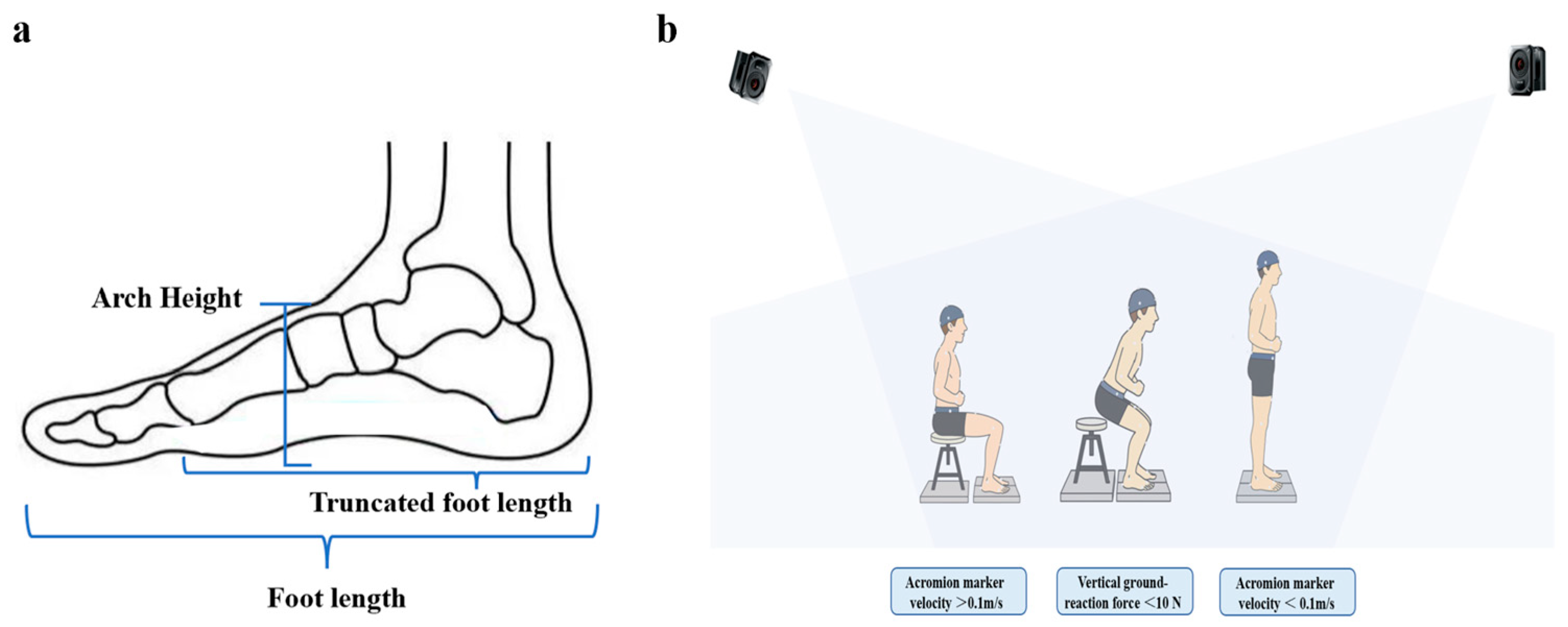 - Williams, D.S.; McClay, I.S. Measurements used to characterize the foot and the medial longitudinal arch: Reliability and validity. Phys. Ther. 2000, 80, 864–871. [Google Scholar] [CrossRef]