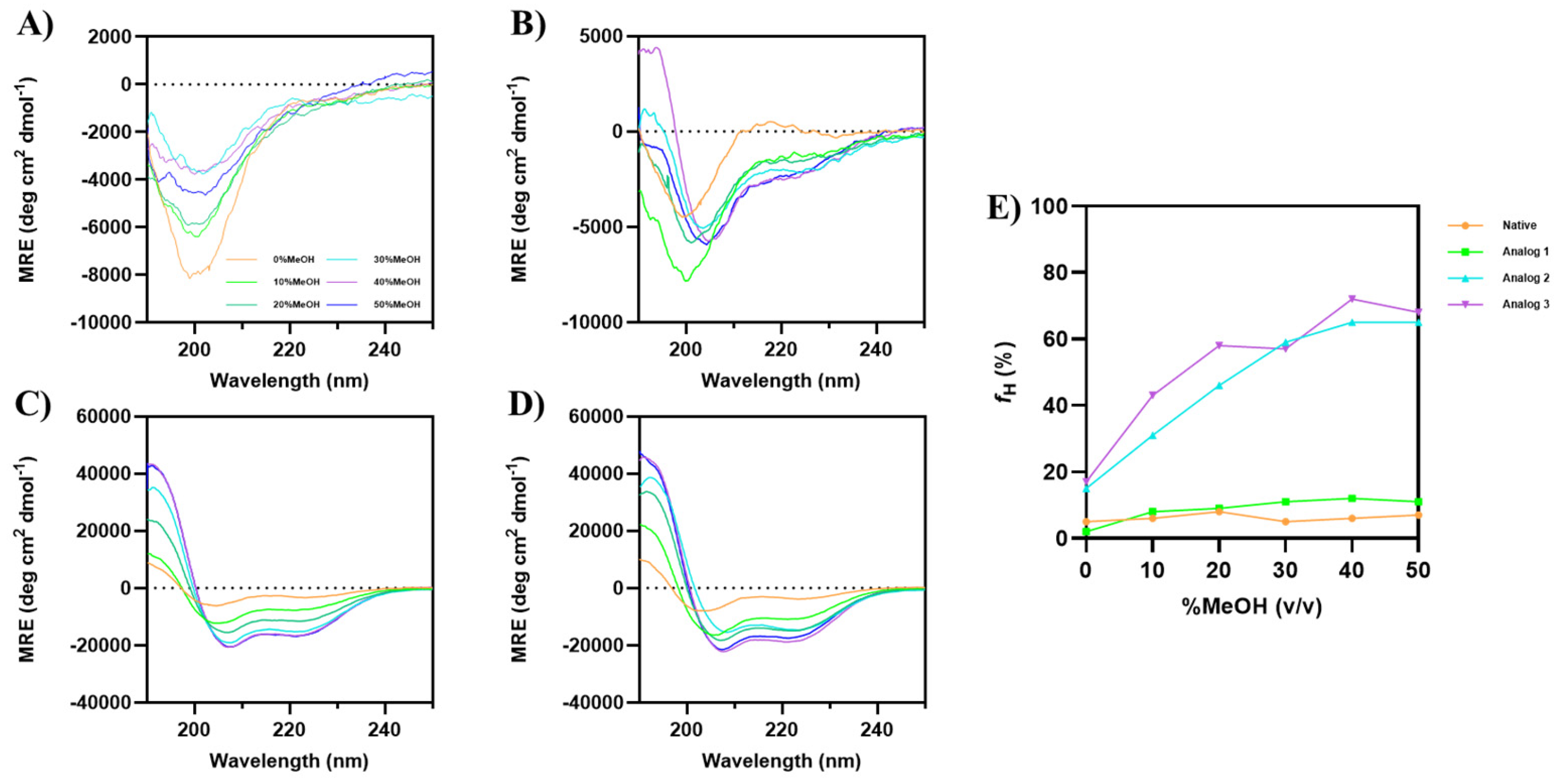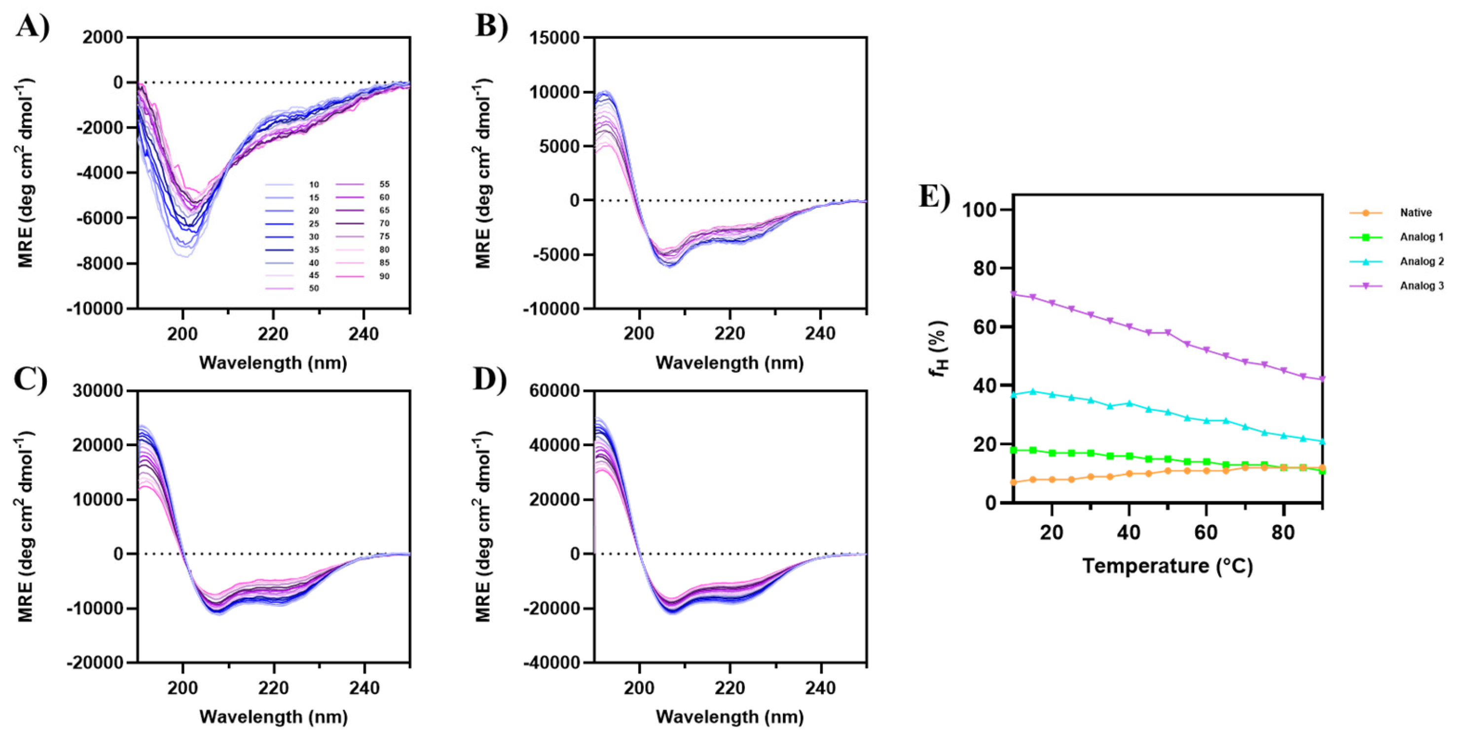 - Zavrtanik, U.; Lah, J.; Hadži, S. Estimation of Peptide Helicity from Circular Dichroism Using the Ensemble Model. J. Phys. Chem. B 2024, 128, 2652–2663. [Google Scholar] [CrossRef]