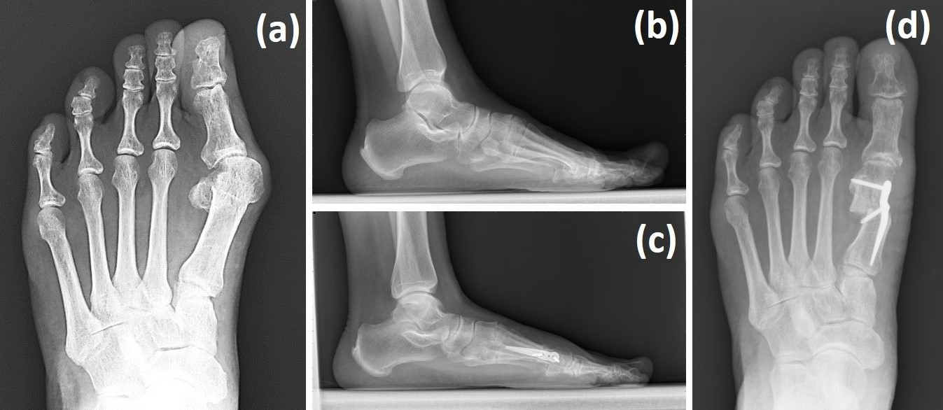 1]. In recent years, several short- to mid-term studies have explored the use of intramedullary or locking plates for primary hallux valgus correction [