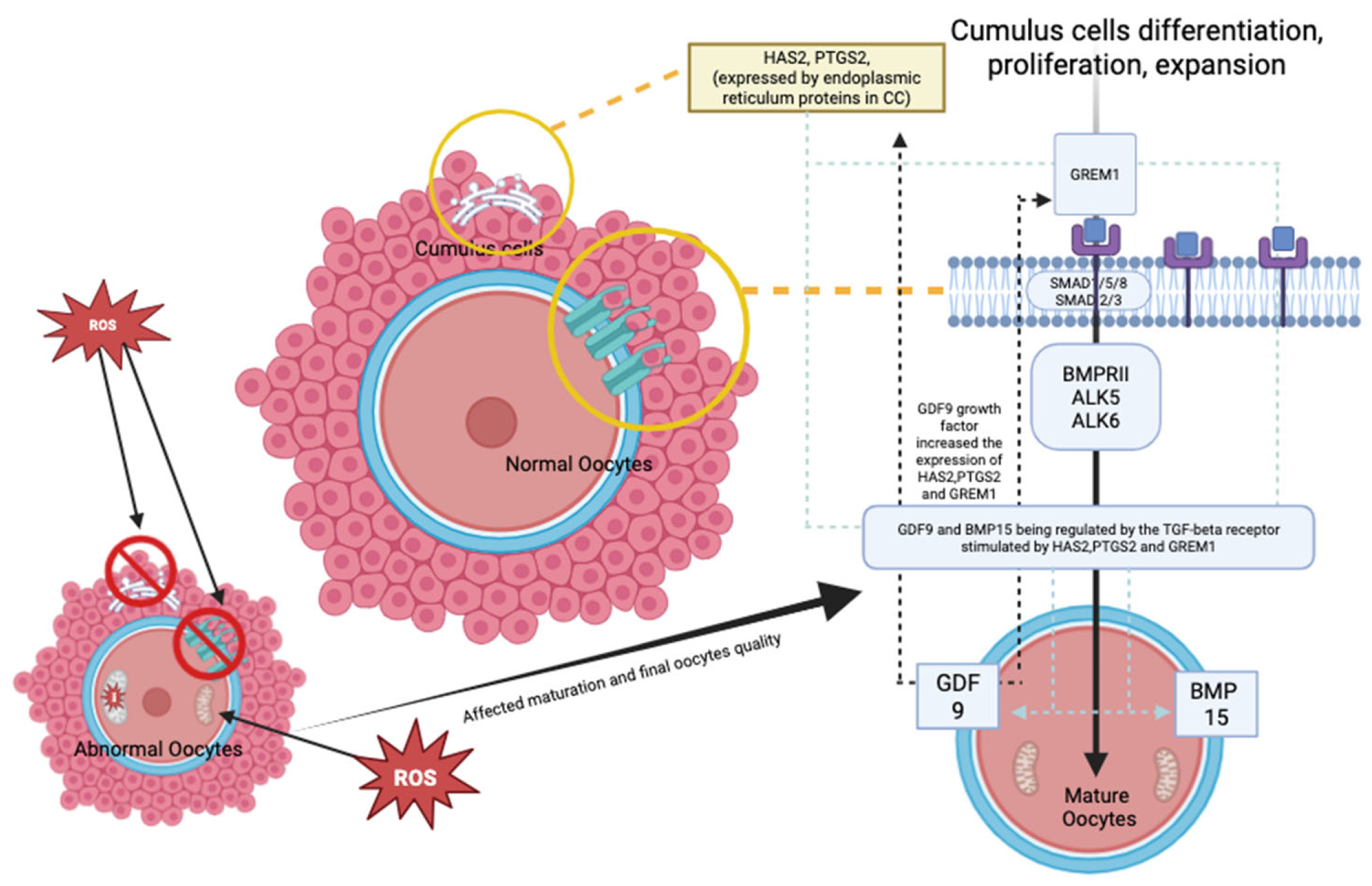 - Faizal, A.M.; Elias, M.H.; Jin, N.M.; Abu, M.A.; Syafruddin, S.E.; Zainuddin, A.A.; Suzuki, N.; Karim, A.K.A. Unravelling the role of HAS2, GREM1, and PTGS2 gene expression in cumulus cells: Implications for human oocyte development competency—A systematic review and integrated bioinformatic analysis. Front. Endocrinol. 2024, 15, 1274376. [Google Scholar] [CrossRef]