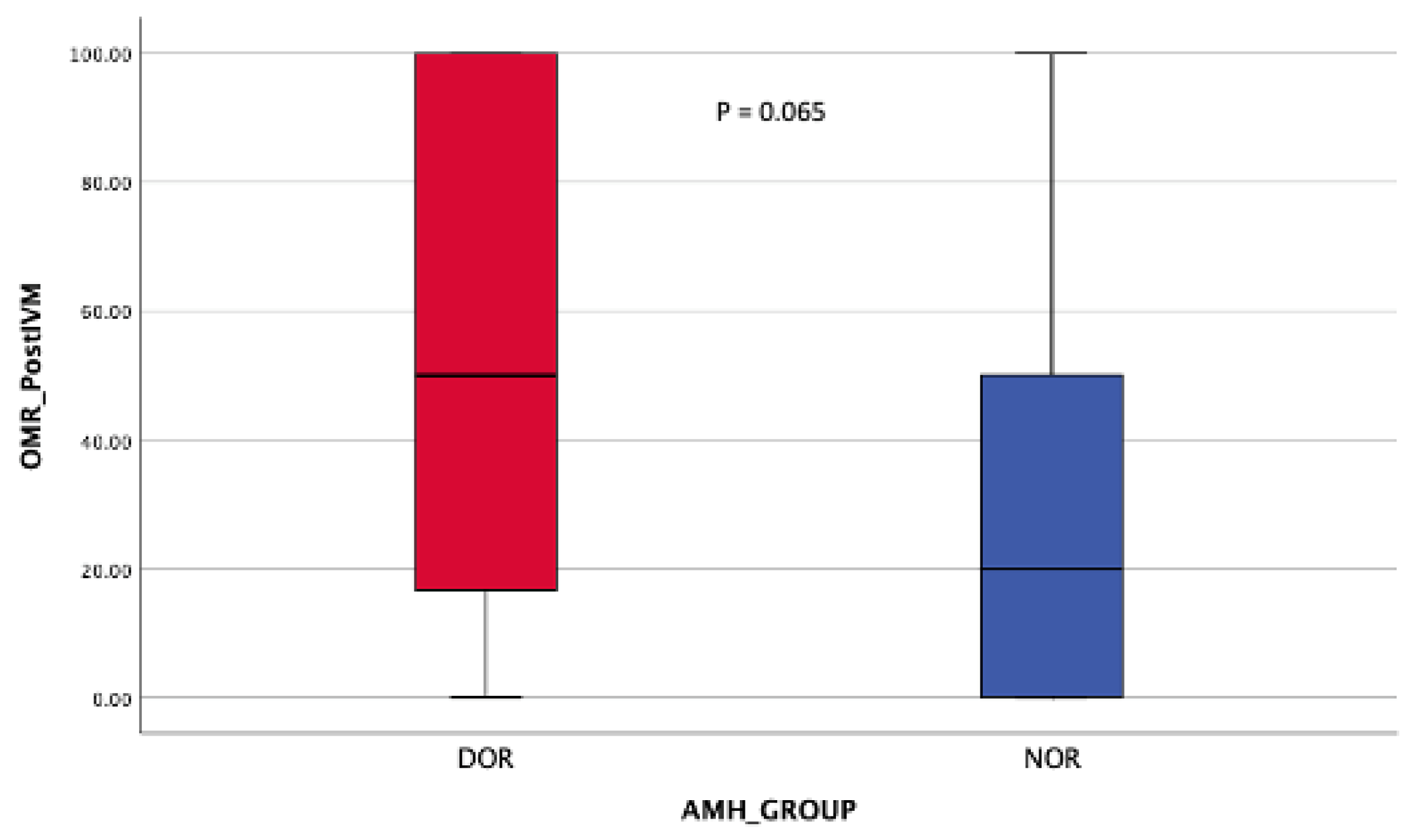 - Ahmad, M.F.; Mohd Nor, N.Y.; Mohammad Ramadneh, M.M.; Roseli, N.I.; Elias, M.H.; Mat Jin, N.; Abu, M.A.; Syafruddin, S.E.; Zainuddin, A.A.; Azhar, S.S.; et al. Comparative Analysis of Rescue-In Vitro-Maturation (r-IVM) Outcomes in Women with Diminished Ovarian Reserve (DOR) Versus Normal Ovarian Reserve (NOR). Biomedicines 2025, 13, 1084. [Google Scholar] [CrossRef]