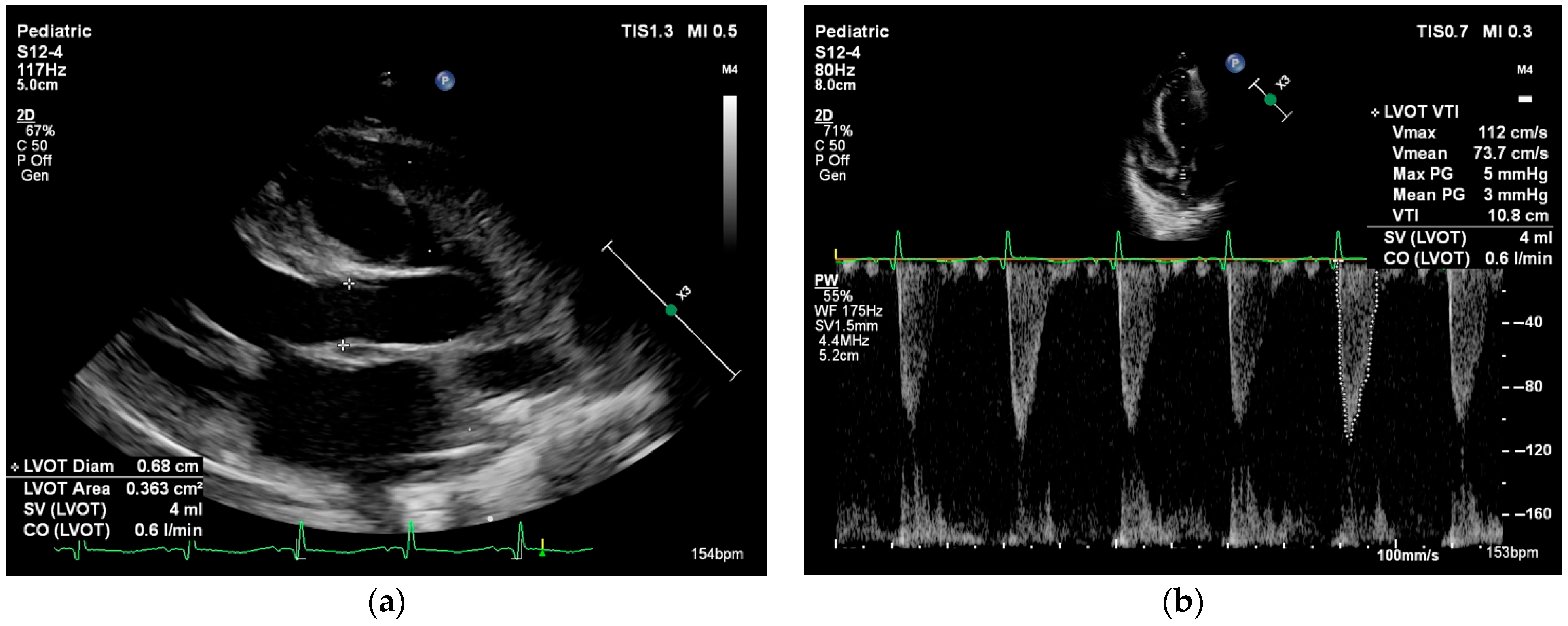 - Singh, Y. Echocardiographic evaluation of hemodynamics in neonates and children. Front. Pediatr. 2017, 5, 201. [Google Scholar] [CrossRef]