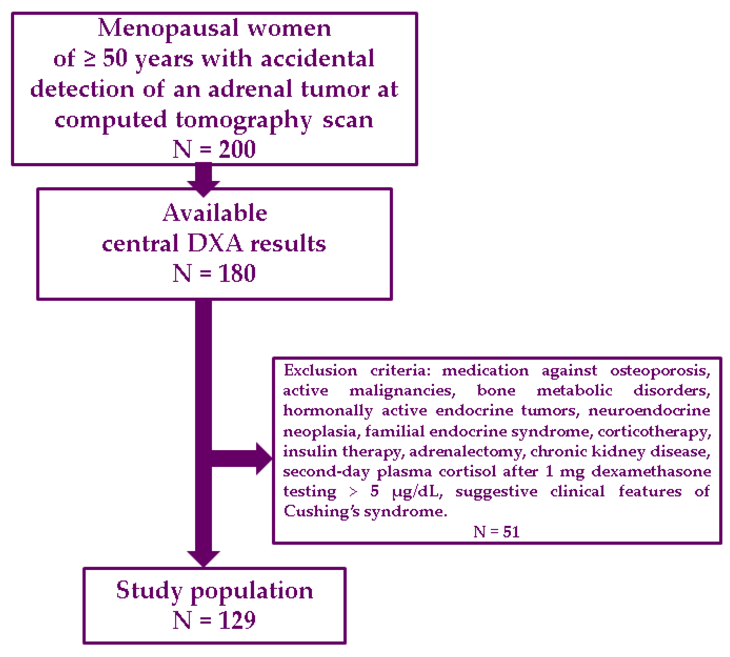 - Athimulam, S.; Bancos, I. Evaluation of bone health in patients with adrenal tumors. Curr. Opin. Endocrinol. Diabetes Obes. 2019, 26, 125–132. [Google Scholar] [CrossRef]